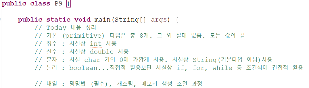 보라색은 문법에 활용된 키워드 즉, 보라색 = 문법