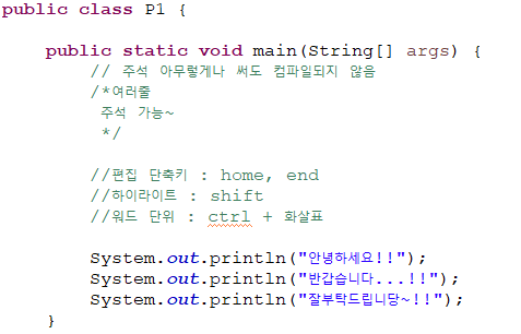 하이라이트 : Shift + 방향키 혹은 HOME End 버튼 활용