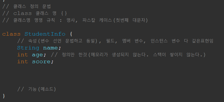 속성, 필드, 멤버 변수, 인스턴스변수는 다 같은표현이고 하늘색이다.