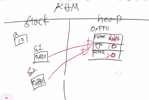 근데 이렇게 하면 s1 이 소멸되면 heap 연결된 메모리가 다 소멸되기때문에 클래스 Score 관련 메모리도 연쇄적으로 소멸됨.