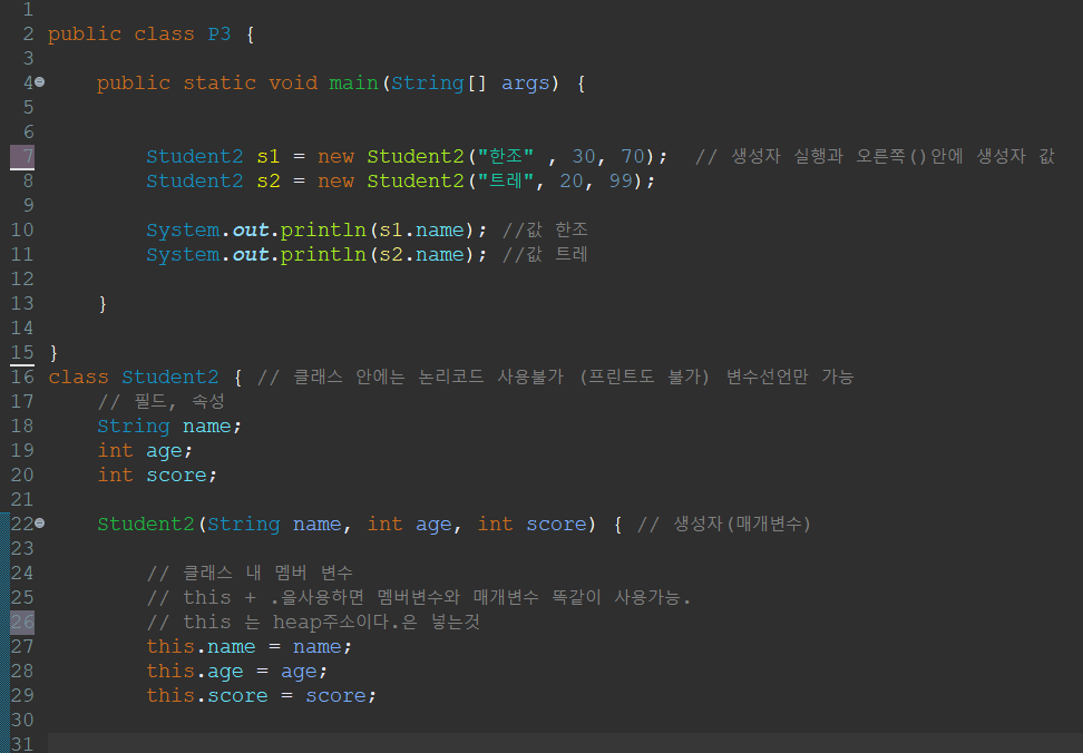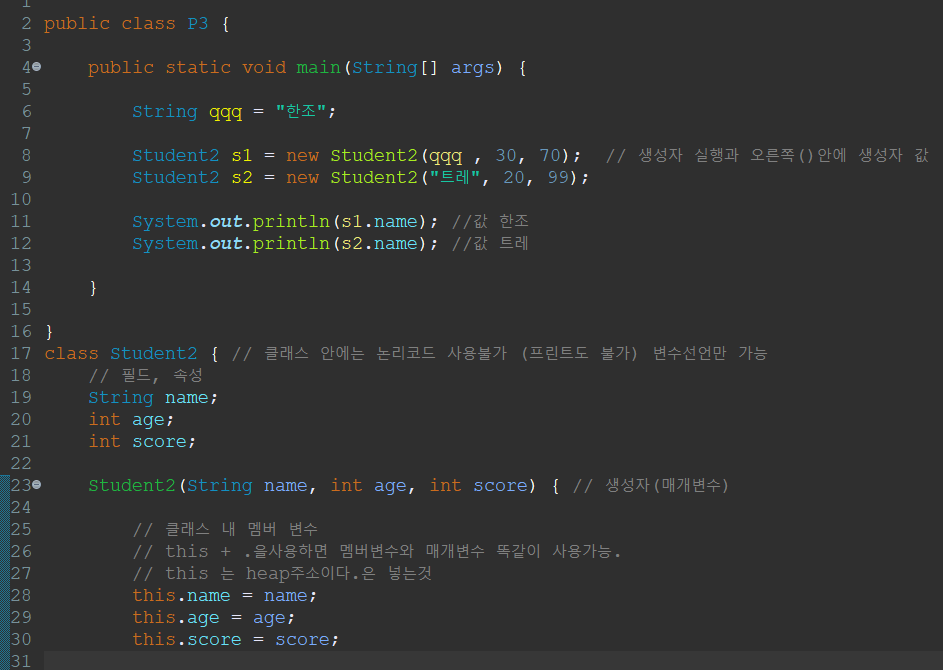 클래스 내부랑 똑같이쓰고 나서 그앞에 this. 붙이기!