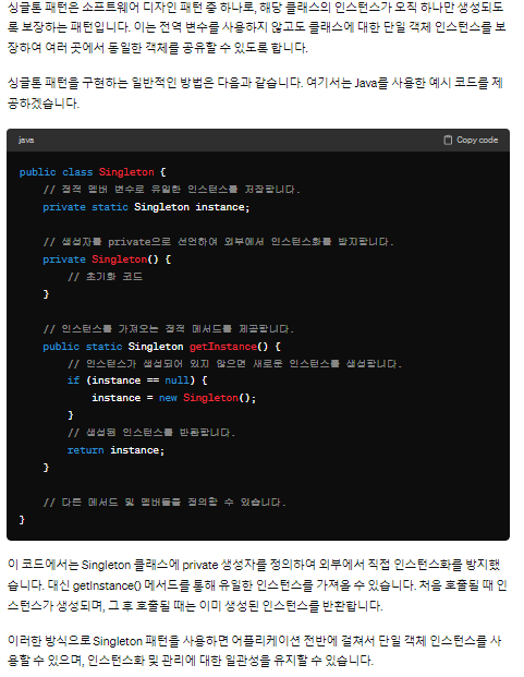 // 싱글톤 패턴 코드는 생성자부터 막는다.