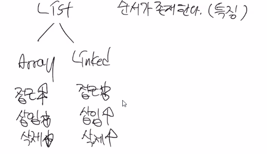 중간에 값을 삽입하는경우, 값이 삭제하는 경우 = LinkedList