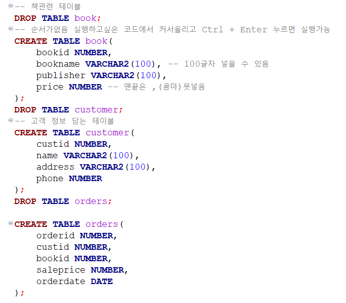 삭제하고싶으면 DROP TABLE가서 커서 놓고 Ctrl + Enter 누르면 테이블삭제됨.