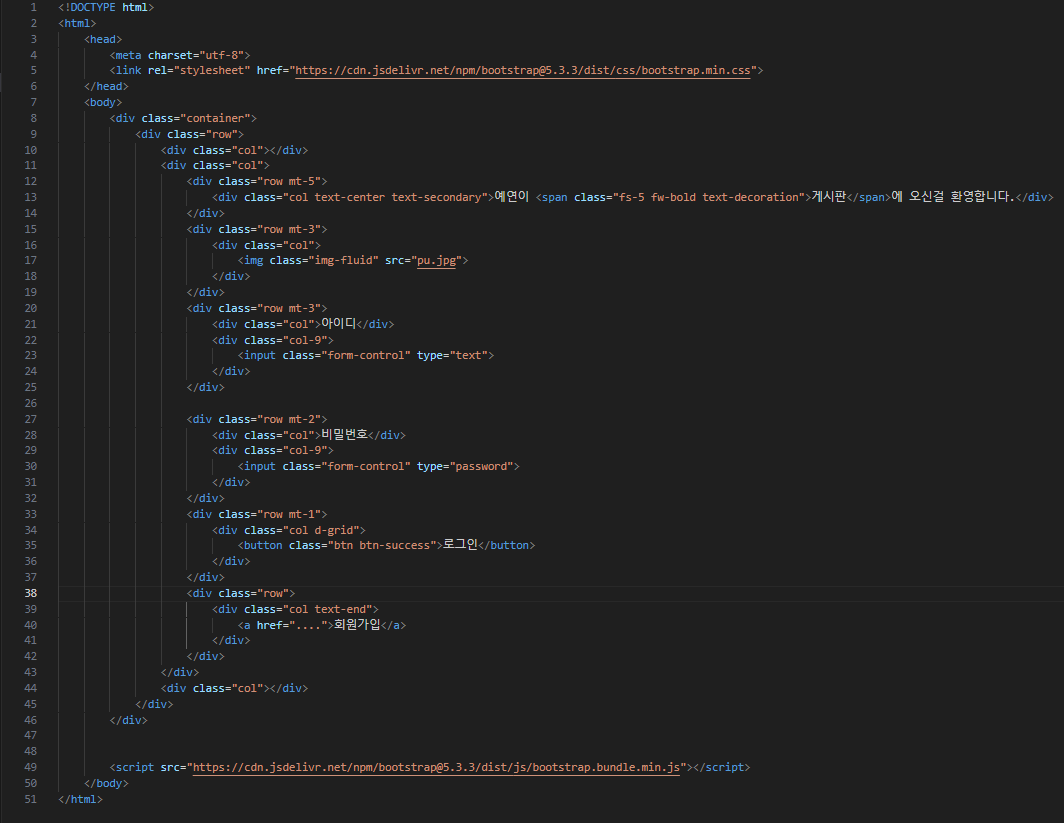 | 33일차(부트스트랩실습 - 웹페이지 만들기 게시판 및 여러가지) (0) | 2024.04.19 |