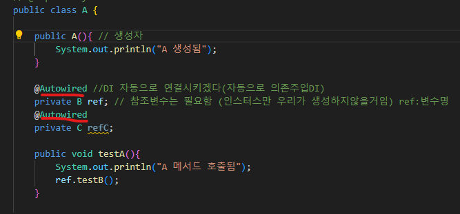 컨테이너의 A라는 클래스는 스프링 컨테이너가 가동할때??