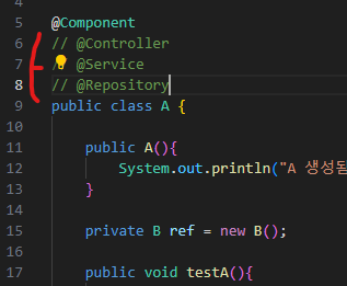 @Component 및 사진 주석처리 세가지 종류는 = 인스턴스 생성 유도 하는 어노테이션