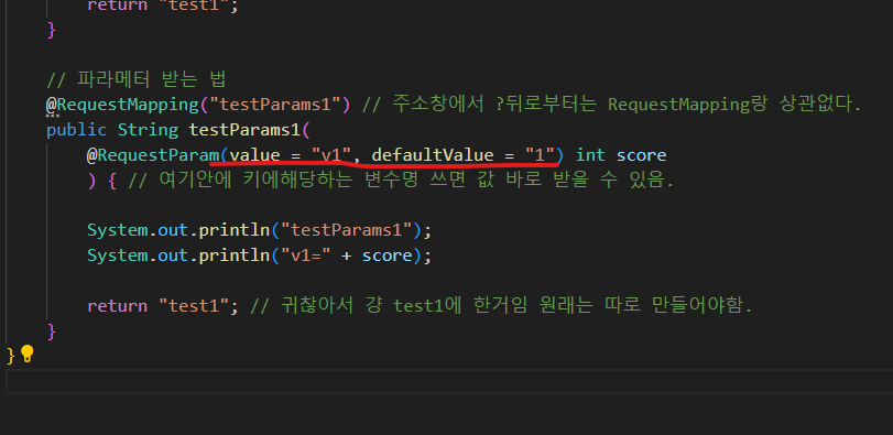 @ReuestParam을 하면 키로 변수명 score로 써도 값이 출력됨!!