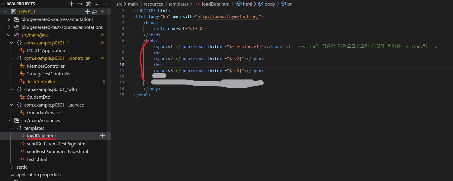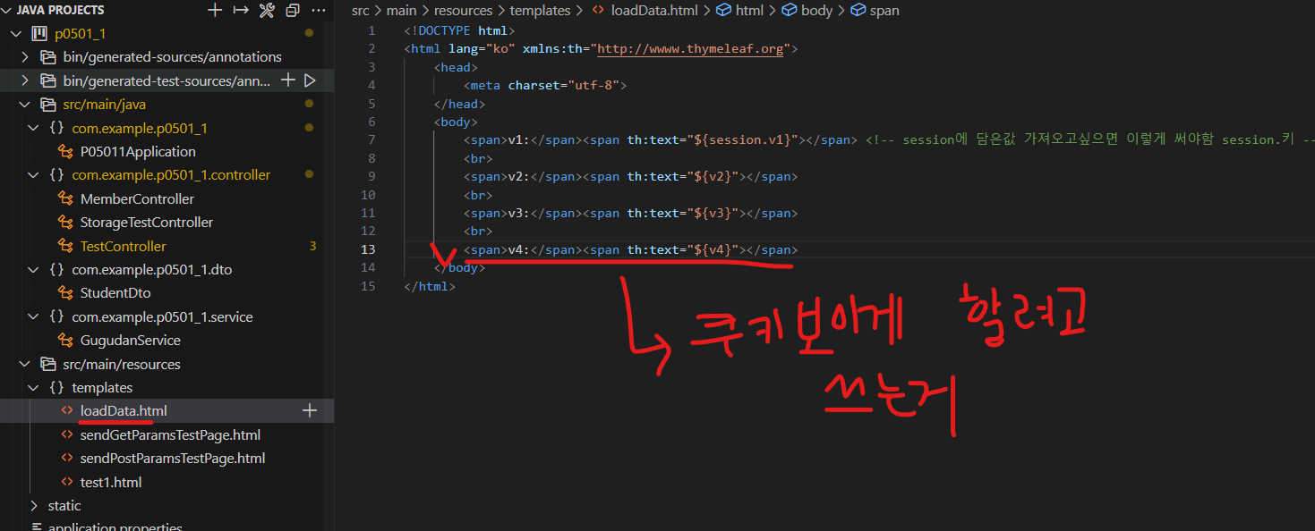 근데 저 session쓰고 loadData한번쓰면 세션에 들어간값이 나옴!!!