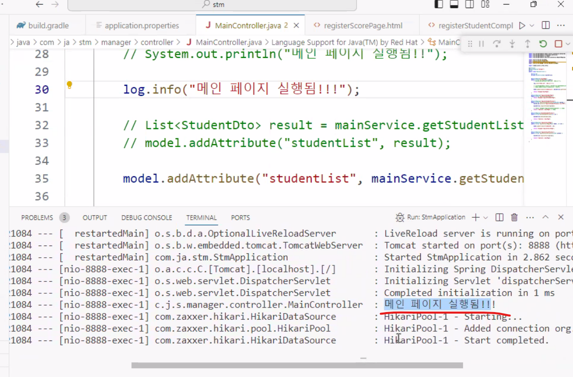 홈페이지 접속해서 새로고침할때마다 실행되는지 안되는지 저렇게 뜸!!