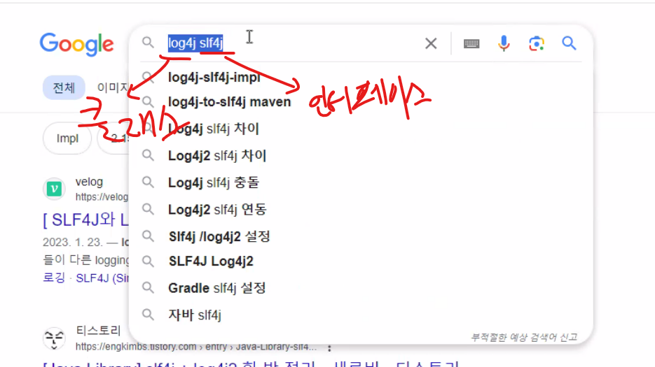 대충 저렇게 생각하셈 인터페이스 안에 클래스 있으니까 위에것도 slf4j안에 log4j 포함됨!