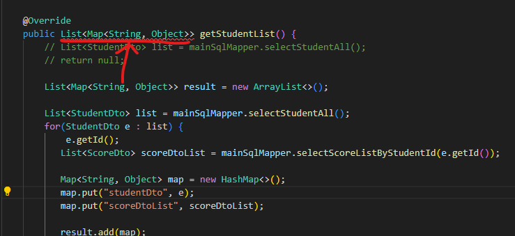 이중 for문을 만들것임 노란줄은 스튜던트인포가 Map임 이중for문인데 하나는 어디있냐