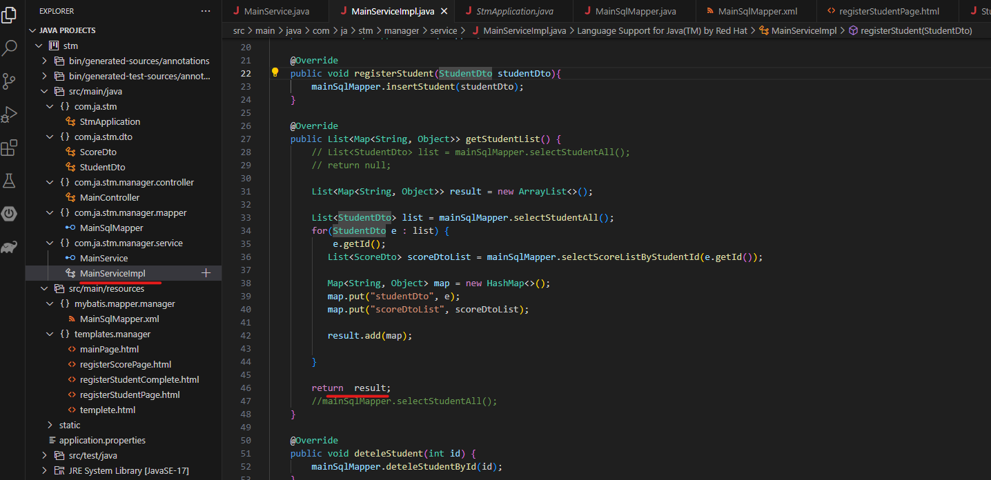여기도 바꿔야함... result로 그리고 저 중간에 e.getId() 아래에 썼으니까 중간꺼 삭제하기!