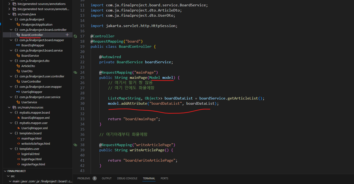 그이후 보드 컨트롤러 가서 모델에 담아주기