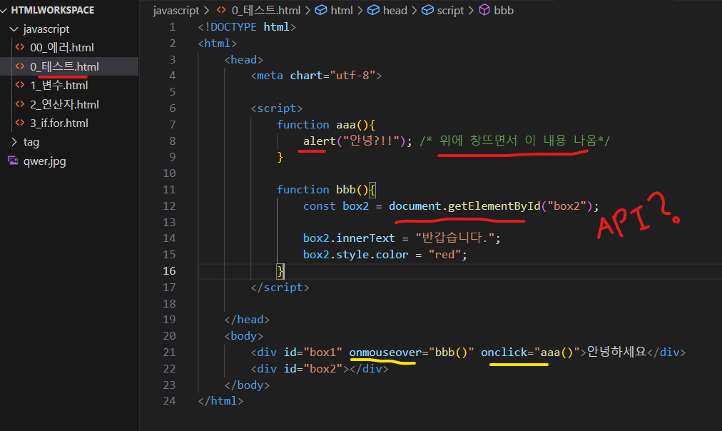 onmouseover 하면 마우스 커서를 올렸을때 코드가 실행됨
